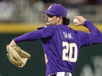 FeaturedBy GLENN GUILBEAU, Tiger Rag Editor Maybe LSU ace Casan Evans was waiting for the Tigers’ first ranked opponent. Evans, the sophomore right-hander who was a consensus first team freshman All-American last season at 5-1 [...] -