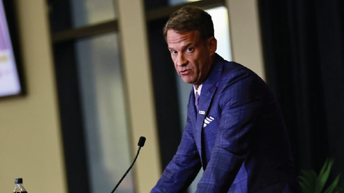 LSU football coach Lane Kiffin had a day and night Friday - five portal commitments. (Tiger photo by Jonathan Mailhes).