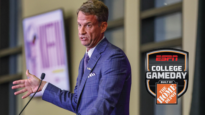 Kiffin, who accepted the LSU job last Saturday and arrived Sunday after leaving the Ole Miss head coaching job following six seasons, will be on ESPN’s College GameDay on Saturday morning between 9 a.m. and 10 a.m.