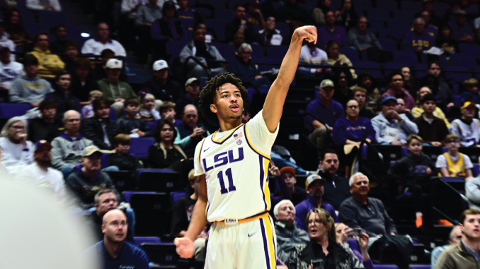 LSU’s inside-out game dominated as point guard Dedan Thomas Jr. also scored 22 on 8-of-11 shooting and ran the offense superbly with 12 assists. He added 2-of-2 shooting from three-point range. Wing Max Mackinnon added 15 points with two blocked shots.