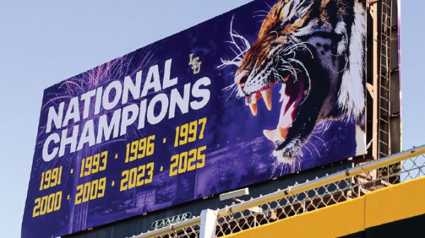 LSU Unveils Another Updated “Intimidator” Sign At Alex Box With 8th National Championship
