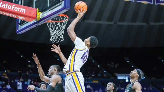 In the first half the two teams combined for 16 three-pointers as LSU made 6-of-12 of their own and LSU was at 50 percent from the field but Dontae Horne and Tai’Reon Joseph combined for six long-distance makes as they combined for 36 of Prairie View’s 56 points.