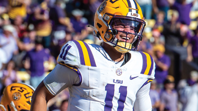 New LSU starting QB Michael Van Buren, who has replaced an injured Garrett Nussmeier, says he is committed to staying at LSU. (Tiger Rag photo by Michael Bacigalupi).